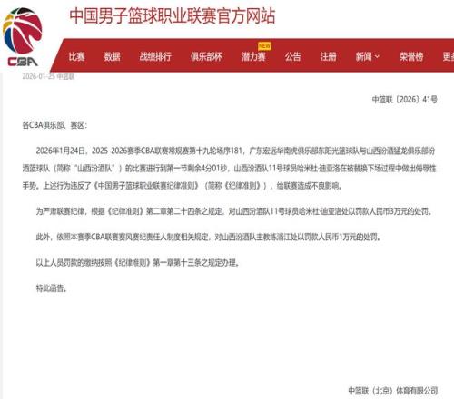 刚刚,CBA公司给山西队球员迪亚洛开出了一份罚单,对他进行罚款30000元,与此同时,山西队主教练潘江也是受到了牵连...