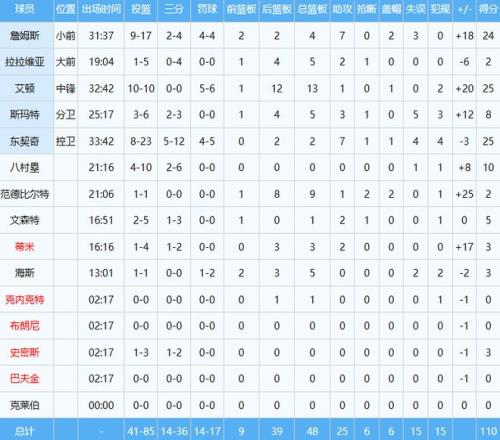 艾宝,不,艾顿数据很是亮眼,投篮10中10,以100%命中率独揽25分13板两双数据,队史比肩2003年的奥尼尔、1981年的库普切克和1969年的张伯伦。