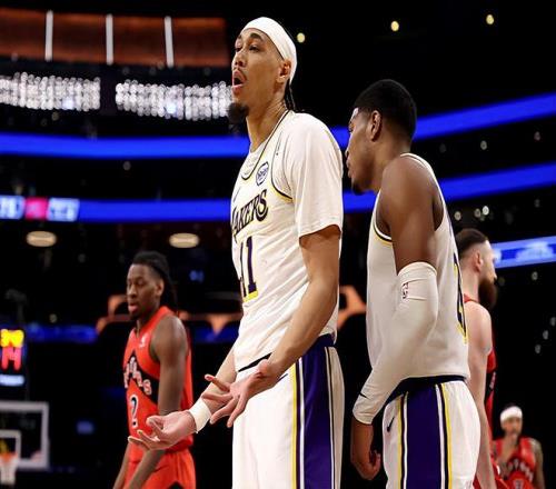 本场比赛中,湖人的替补中锋贾克森-海斯(Jaxson Hayes)的表现也是值得肯定的。海斯全场出场22分51秒,投篮5中4,罚球4中1,得到了9分5篮板2盖帽的数据,还有2次犯规,正负值更是达到了全场最高的+16。海斯在进攻端效率不俗,展现出了相当不错的篮下得分能力,甚至还有一手小抛投的技能,他也是抓住了不多的机会起到了很好的效果。海斯在防守端的表现也是值得肯定的,他在内线防守方面的表现也是不差的。本场比赛由于对手缺少了尼科拉-约基奇(Nikola Jokic),所以海斯不需要和这种传统型内线去对位,他在吨位方面的不足也是没有体现出来。总体来看,在德安德烈-艾顿(DeAndre Ayton)提前退场的情况下,海斯还是撑住了局面,并且为球队的胜利做出了不小的贡献。