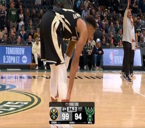 字母哥22+13+7伤退!雄鹿无缘23分逆转残阵掘金近8战6败