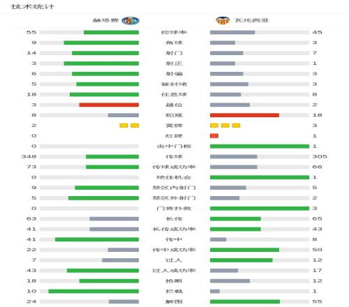 北京时间1月18日西班牙足球甲级联赛 联赛 第20轮,赫塔费主场对阵瓦伦西亚。瓦伦西亚加亚破门。最终比分赫塔费 0-1 瓦伦西亚。