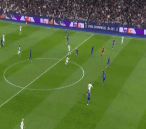 伤停补时阶段,居莱尔横传,马斯坦托诺右路起球,贝林厄姆头球攻门高出,皇马带着2球优势回到更衣室。