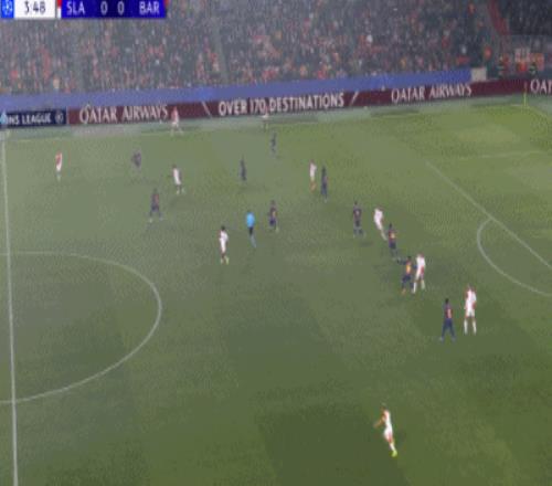 第64分钟,奥尔莫世界波远射破门,巴萨3-2布拉格斯拉维亚