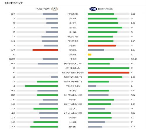北京时间1月17日意大利足球顶级联赛 联赛 第21轮,乌迪内斯主场对阵国际米兰。上半场,埃斯波西托助攻劳塔罗-马丁内斯破门,率先打破场上平衡。下半场,埃斯波西托越位在先,迪马尔科的进球被吹无效。最终,乌迪内斯主场0-1不敌国际米兰。