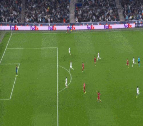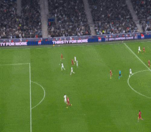 半场补时第2分钟,索博斯洛伊主罚前场任意球,选择直接贴地斩破门,利物浦1-0马赛。