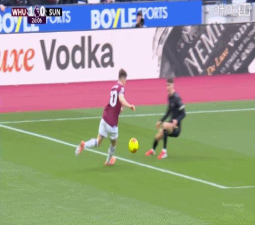 第14分钟,鲍恩右路底线传中,萨默维尔头球破门,西汉姆联1-0桑德兰