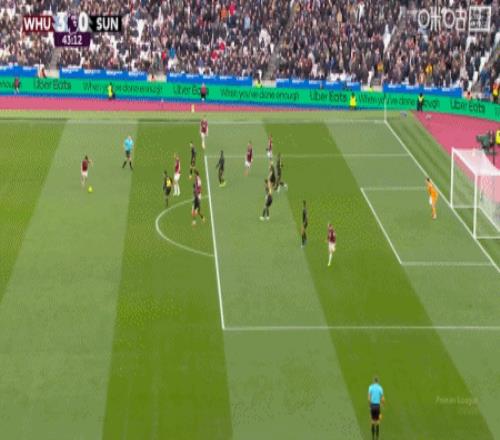 第43分钟,费尔南德斯外围远射破门,西汉姆联3-0桑德兰